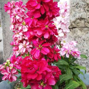 庭の寄植え ピンク、紫のストック 次から次へ咲いています もう、春が来ています 🌼🌷🌹🥀🌼
