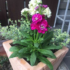 プリムラジュリアンとストックの寄せ植え🌸 やっと、お花が沢山咲いてきた🤗💕
