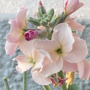 1月9日 今日のお花『ストック』です。 【ストック(アラセイトウ)】 南ヨーロッパ原産、アブラナ科一年草 直線的な花茎に、穂状に甘い香りの花がたくさん咲く。 一重咲きから八重咲きまであり、さらに枝分かれせずに咲くタイプとスプレー咲きのものまで、バリエーションが豊富。 春の代表的な切り花としても流通する。 草丈:20~80cm程度 花色:黄、白、ピンク、紫 開花時期:11~5月頃 広島市植物公園にて