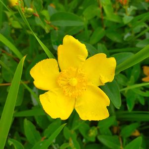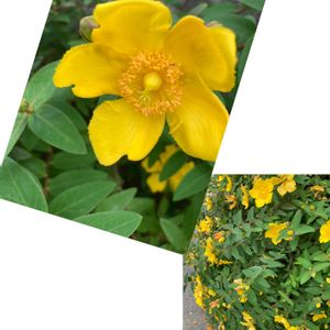 ヒペリカムの仲間たち🌼 ①金糸梅(キンシバイ) ヒペリカム・パツラム 枝垂れた枝の先端にうつむき加減に小さい花(2〜3cm)を咲かせる 花弁はカップ状で平開せず、浅い切れ込みがあり、やや下向きに咲かせる 雄しべは花弁より短く、黄色 ②大輪金糸梅(タイリンキンシバイ) ヒペリカム・ヒドコート 🔍西洋キンシバイと他のキンシバイ属の植物との交配によって生まれた品種で、ヒドコート (Hidcote) とも呼ばれる 金糸梅との違いはキンシバイより花弁が大きく黄色味が強く、雄シベが短く、葉も大きく葉序は金糸梅が対生であるのに対し十字対生に付く ③西洋金糸梅(セイヨウキンシバイ) ヒペリカム・カリシナム 草丈はあまり高くない(30〜60cm) 雄しべが花弁より長く葯は赤色を帯びていて、広角に開くのが特徴 雄しべが約90~120本で直線的に伸びている ④ 美容柳・未央柳(ビヨウヤナギ) ヒペリカム・モノギナム 雄しべが、約30~40本が5つの束となり、花火のようにカールして伸び花冠より突き出し、葯は黄色 ⑤我が家の小坊主弟切(コボウズオトギリ) ヒペリカム・アンドロサエマム 葉は卵形又は卵状楕円形で葉柄はなく対生する。花は集散花序につき、直径約2cmの黄色い花が咲き、果実の色が赤から黒色に変化 大きな萼片5個は平開、花弁5個、雄しべ多数、柱頭は3裂、萼は花後も残る こんにちは☔️ 今日も穏やかに過ごせますように🍀 🏷️イロイロ参加します