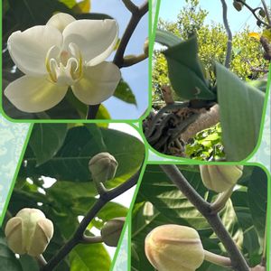 庭木に着生の胡蝶蘭さん、 昨日から今日にかけて開花しました💖 pic右上から時計回りの時系列です。 ↗️昨日の朝、後ろ側着生部分から ↘️昨日の午前8時、開き始めました! ↙️昨日のお昼にかけてゆっくりゆっくり ↖️今朝の状態です。 WBC優勝お祝いしてるみたいです🤗🎊 おめでとうございます🍾🎉 感動をありがとうございます💓 昨年の春ごろに夫の会社からお下がりでいただいた 大きな胡蝶蘭。 庭木への着生に挑戦。 結果→成功👍 ٩(。˃ ᵕ ˂ )وイェーィ♪ 今後も着生にトライしていこうと思います♪♪♪ 10月5日、12月14日picで 途中経過記録済み
