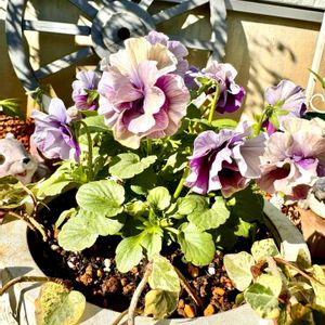 お迎えした時のイメージが ガラッと変わってしまい、 最近ちょっと気になるビオラ。 繊細で弱々しくて、 レディに近い雰囲気を 醸し出していましたが、 植え付け後は花茎も太く、 元気いっぱい。 さらにカラーも黄色味の強い アプリコットでしたが、 黄色味が抜けほぼパープルに変化。 水やりの時に、 なんとなく目がいってしまう ちょっと気になる存在です✨