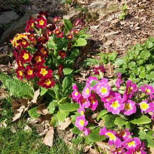 木陰あるプリムローズ達。 色合いを考えずに植えた結果がこれです。 黒と黄色のは、あんまりプリムローズっぽくないので、別のカテゴリにしたい。