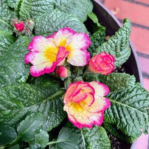 ご近所のおじちゃんから多肉植物の本を3冊もいただき、気持ちばかりのお礼を届けたら、お庭に可愛らしいお花が😍 奥様が、昨日お迎えして植えたばかりのお花らしい。可愛いだけじゃなく、なんだかゴージャス✨ 近くにネームプレートがあり「プリムローズ コロネット」とありました。