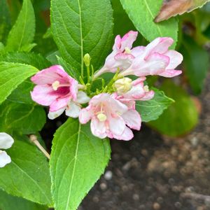 おはようございます😊 ハコネウツギ スイカズラ科 季節外れのお花が、咲いていてびっくりです🫢‼️ 2枚目 斑入りアベリア スイカズラ科 ふくちゃん発信 🏷️木曜日は桃色 🏷️ピンクワールドへようこそ 🏷️木曜日は木に咲く花 今日もよろしくお願いいたします🤲🤗