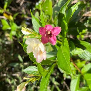 ハコネウツギ(箱根空木) *スイカズラ科タニウツギ属 花期は5〜7月 北海道南部から九州の日当たりの良い海岸近くのに自生する落葉広葉樹低木〜小高木! 葉は対生し楕円形〜広卵形で先が尖る! 花冠は漏斗状で上部は5裂けし花筒が上半部で急に筒状に広がるのが特徴! 花色は始め白色で開花中に薄いピンク.紅色と三段階に移り変わり、三色が一つの枝で同時に咲くのが見られる! ・公園樹や庭木などにも人気! 自宅近くの海岸に生えているのを今年になって初めて気付きました❗️ 6月16日撮影 🏷️木曜日は木 仙台港付近