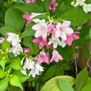 今日の母の庭 昨日タニウツギを見たので庭の箱根空木もそろそろかなと見てみたら 咲いていました😊💕 ネットより 咲き始めの花は白だが、開花中に色素が変化し、順次、薄ピンク、紅色と三段階に移り変わる。 これら三色が一つの枝で同時に咲くのが本種の見どころ。