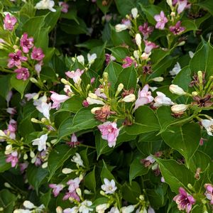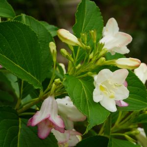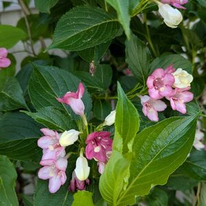 ˚✧₊⁎ハコネウツギ⁎⁺˳✧༚ 咲き始めは白🤍 ⏩ だんだんピンク色になる🩷 源平咲きになって素敵ですよね✨ 🤍🤍🩷🩷🤍🤍🩷🩷🍃
