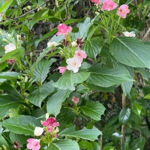 20年程前は歩道脇の植え込みで満開の花を咲かせていたハコネウツギですが、最近通ったらポツンポツンとあるだけ。 一体どうなったんでしょう⁉️ 1本の木に白やピンクやローズの花が混じって咲いていて、ハコネウツギと言う名前を知ったのもこの植え込みでした💞