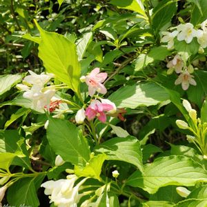 こんにちは😊 今日のお花🌸ウツギ🌸 ①タニウツギ‥最初からのピンクで咲いてます ②ハコネウツギ(ベニウツギ、ゲンペイウツギ)白からピンク、濃ピンクに変化します 🌿どちらも公園に植栽されているので良く見ます😉 ③つるバラ安曇野💓…happy〜🥰 ④バラレディエマハミルトン🧡🩷‥この色好きです ⑤バラ羽衣🤍‥優雅で優しい感じ😌 買い物ついでに寄った公園の薔薇‥涼しい日が続いてるのでまだ綺麗でした💞 🏷️木曜日は桃色