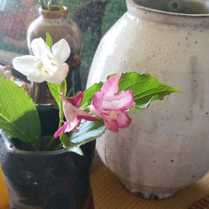 ユーミンの日🏷️ 五月 新緑の季節と言えば 私の中では一択しかないです 「緑の町に舞い降りて」 ユーミンの好きな曲ベスト10なら この曲も選びますね♪ 行ったことのない 岩手の新緑の風景に 空想の翼が広がります🌿 写真はピンクの日なので 斑入りのハコネウツギを まだ花の咲いている時に お散歩ちゃんを連れて行けて良かった🌸 拙い俳句ですが久しぶりに ねこたんぽさん主催の GS句会🏷️に 参加させて頂きます_φ(・_・ 青葉若葉 MORIOKAの歌 口ずさむ 幾つもの 花言葉抱き 薔薇(そうび)咲く もち 一句目は ユーミンの歌にちなんで 二句目は 色、咲き具合、本数と 薔薇には覚えきれないほどの 無数の花言葉があるので 詠んでみました