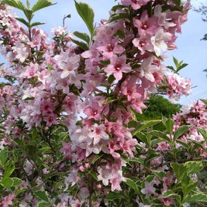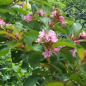 おはようございます 晴れた朝です。 今朝の庭に咲く花 🌸箱根ウツギ🌸 小さな苗から育て 今では、私と同じ高さになりました ピンク色のウツギ 可愛いです