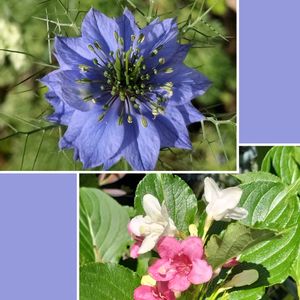 💠青いニゲラの花 去年はつぼみの青さに騙されてたら白いニゲラでした! 今年も白なんだろうと思っていたら 本当に青かった💠 嬉しい! 残っててくれたんだね😄 下のは、ハコネウツギの花 🤍→🩷️→❤に色変化するのが可愛いわー💖