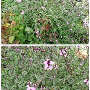 今日の庭🌿 少しアップで撮ってみましたが 暗くなっちゃいました …f^_^; ゴンフレナ ラブラブラブ →ペニーロイヤルミント →バーベナ ‘バンプトン’