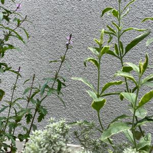 ミズヒキ… こんなのどこから… と思って見上げてみると 誰も住んでないお隣の庭に めっちゃはえてる… バーベナ バンプトンと ミソハギと この子で花壇のなか わっさわさ😭
