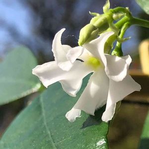 おはようございます✨😊✨ 今日のお花ジャスミン🌿🤍🌿 この子はベランダの エンジェルジャスミン🌿🤍🌿 別名スタージャスミン 和名オオシロソケイ ハゴロモジャスミンでは無いですが少し珍しく美しい子🌿🤍🌿 清らかな純白の大きな星🌿☆🌿 ウクライナの空にも早く 美しい星が戻ります様に🙏 🏷平和を願う 🏷No more war ベランダで7月に撮りました📸