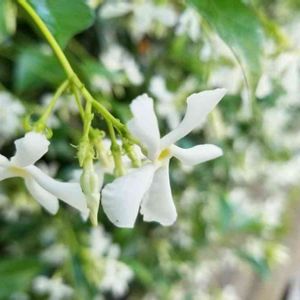 マスクをしていても、どこからともなく甘~い香りが漂ってくるので、近寄ってみると、 この🌼スタージャスミン🌼 はじめて目にする風車形の花びらがなんとも風変わりで、可愛いです(*ˊᵕˋ*)੭ ੈ✨💓💞 中国、台湾が原産のキョウチクトウ科テイカカズラ属のつる性常緑低木です😅👍 ジャスミンという名前がついていますが、テイカカズラの仲間で、トウテイカカズラ(唐定家葛)とも呼ばれています✨🤗✨ 風車の形をした花もなかなか美しいですが、なんと言っても、よい香りが魅力です😅👍 =基本情報= *キョウチクトウ科 *テイカカズラ属 *学名 Trachelospermum jasminoides *常緑つる性低木 *別名 トウテイカカズラ(唐定家葛) *原産地 中国、台湾 *主な用途 庭植え(生け垣) *花期 5~6月