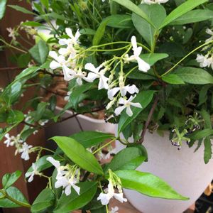 私の知っているジャスミンのイメージとは少し違いましたがいい香りの蔓性植物です。甘い香りがしました。テイカカズラの花にも似ていましたが 葉っぱが違うし テイカカズラの花はこんなに香りしないかと ジャスミンの一種でしょうか?