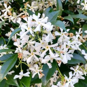 形がかわいくて、近寄ってみたら、スタージャスミンというお名前。ジャスミンの香りは、ほとんどわからなかったのが残念😅