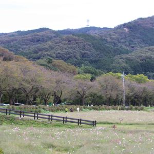 巾着田 ⑧ すっかり秋の高麗川沿い。 手前はコスモス畑🌸 その向こうが桜の木。 春には、菜の花🌼と桜🌸の咲く巾着田公園になるようです。 またその季節に来園できるかな😊