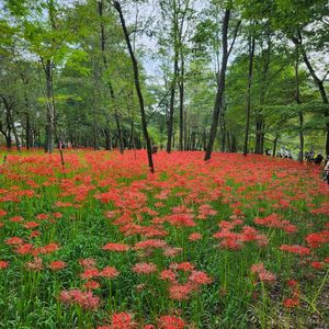 9/30㈪② bowと二人で行って見てきました〜😃 埼玉県日高市高麗(こま)にある巾着田の曼珠沙華の絨毯を見に!! 一面の赤、赤、赤で、玉〜に白い花がポツンとありました❤️❤️🤍❤️ 「いやだ!綺麗〜!!」と感嘆してる方がいました🤭そこは「いやだ」ではなくて「わぁ〜!」とか「まぁ〜!」ではないかしら?🤣🤣 咲き始めでホントに綺麗で感動しました〜❤️❤️❤️🤍❤️❤️❤️ 今日は📱で撮った方の写真です。 通路を歩く人々をなるべく入れないように撮りました✌ 白い花は蛍を育ててるという小さな川辺りに割と咲いていました♡ お昼は高麗に向かう道にあった阿里山というお洒落なレストランで食べました😋 これから池袋東武デパートの屋上庭園を見に行きます!! 初めて行くのでワクワクです♡ ←なんと東武デパートの庭園は7年くらい前に閉じられたそうです。園芸店と、屋上休憩所になっていました!! あれぇ?西武デパートの屋上でした?と西武デパートに行ったら、8階のレストラン街🍴と9階の屋上庭園は営業していて、その他は8/21に閉店したそうです😳!! 庭園は見られたので良かったです〜🤗💞 知らなかったなぁ〜NEWS聞き流してしまっていたのね〜😅💦