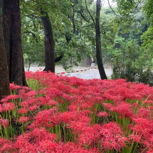「曼珠沙華(ひがんばな)」 作詞:北原白秋 作曲:山田耕作 GONSHAN(ごんしゃん) GONSHAN 何処へゆく 赤い御墓の 曼珠沙華(ひがんばな) 曼珠沙華 今日も手折りに 来たわいな GONSHAN GONSHAN 何本か 地には七本 血のように 血のように ちょうどあの児の 年の数 GONSHAN GONSHAN 気をつけな ひとつ摘んでも 日は真昼 日は真昼 ひとつあとから またひらく GONSHAN GONSHAN 何故(なし)泣くろ 何時まで取っても 曼珠沙華 曼珠沙華 恐(こわ)や 赤しや まだ七つ 🤍🤍🤍🤍🤍🤍🤍🤍🤍🤍 昨日、巾着田へ行きました。 500万本もの曼珠沙華が咲きます。 まだ少し早かったけれど 十分見応えがありました。 私は 曼珠沙華 というと 幼少期に聞いた歌を思い出します。 北原白秋の 「曼珠沙華」 私は 7歳の時、北原白秋の ある小品集の中で この 「曼珠沙華」 の亡くなった子供の役を演じました。 お彼岸に咲く曼珠沙華、 物悲しいこの歌と思い出に浸った一日でした。