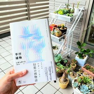 毎月23日は本と植物と。 参加させてください🌵✨️ スイミーの著者、レオ・レオニが書いた、架空の植物たちの学術書。この前行ったレオ・レオニ展で平行植物の作品(絵、彫刻)を見て、すごく惹かれて😍お土産売り場で本が売ってたので思わず購入! フィクションなのにまるで本物の学術書の体裁で書かれていて、文章はすごく難しいけど、引き込まれます📖 なんと日本で発見された平行植物もあったりして。実家のそばだー!って嬉しくなりました(笑)「旧尾張地方の森林」って、海上の森とかかな😂 とにかく奇妙で可愛い植物の本🌵ちょっと多肉感あるよね❤たまらん😋 今日は雨で涼しいから、このままベランダで多肉の横で読書しようかと思ったけど、、、風が吹くと雨入ってくるから諦めました☔