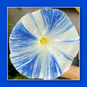 西洋朝顔の 「フライングソーサー」 ご近所さんにもらった苗、咲き始めました💙🤍 朝顔?なのに?咲くの遅っ!と 思わないでね〜、 短日開花性なんです❣️ 暖かい地域では8月以降から 霜のころまで咲き続けるらしいです💙🤍💙🤍