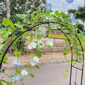 ブドウのパーゴラに絡んだ朝顔が綺麗に咲いていたので🥰 曇り空であまり色良く撮れませんでしたが🥲 もはやブドウより幅をきかせてます😅