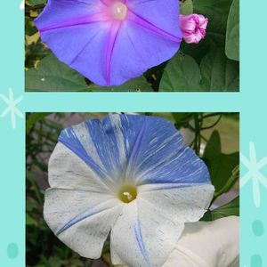 2、3日前から朝顔が開花〜☺ 琉球朝顔『オーシャンブルー』とても寒い当地でも冬越しして3年?毎年咲いてくれます💙 種蒔き『フライングソーサー』真っ白と絞りが咲きました🎵 これはGSのお友達のを見て育ててみたいと思った朝顔、期待通り(*´˘`*)♡