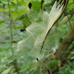 コバノカモメヅルの種髪 ワァ~イ!夢が叶いました🙌 水曜の雨の後、晴れた昨日から飛び始めたようです。 鞘の中で順番待ちして、きちんと並んでいる種髪も見れました😊 陽に照らされてキラキラ輝きながら風に乗って、ふわふわと飛んで行きました。 素晴らしい時に会えて感激しました🎶