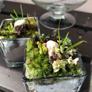 みなさんこんばんは😃以前作った苔アートの結婚式バージョンです!教会風に作って新郎新婦がいるのですが写真を一緒にする方法が分からないので1枚づつアップします!NO1