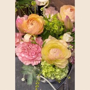 こんにちは✨ 青山フラワーさんのメインのお花は 薔薇&トルコキキョウかな⁉️ 優しい色1つの花瓶に🤍♡💗 優しい眼差しに(* ´ ▽ ` *)💖 🏷️乙女色クラブ