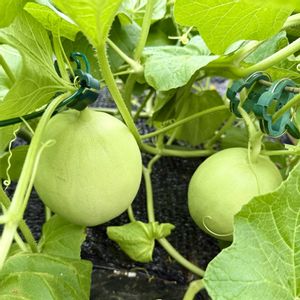 メロンの苗って、大事にし過ぎると失敗するのかな?今年はきゅうりの隣に1つだけそのまま植えて、水やり以外は放任してました。今、網目が出てきたのと、網目が出そうなのが2つ、元気に育ってます😍🍈