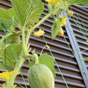 食べたメロンの種から芽が出てダメ元で植えたら雄花が出てきて嬉しいです。明日受粉にトライしてみます