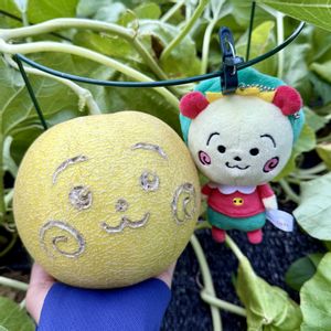 🍈メロン(ころたん) 『お絵かきころたん』に挑戦してみました(੭ˊ͈ ꒵ˋ͈)੭̸*✧⁺˚ ❷畑のころたん🍈を確認していたら…👀 あれ?ネット模様が出てきてるかも…? ❸保護袋を開けて確認🔍 やっぱり!ネット模様がでてきてる😆✨ こうなると、やってみたいお絵かき✏️🎶 ❹手に持ってみる🍈 保護袋で吊るす時にも思ったけど かなり重い💦 片手で長時間持つのは無理なレベル😅 ころたんってもう少し小さめの実が出来るメロンだった気がするんだけど大丈夫なのかしら(*ꆤ.̫ꆤ*)笑 ❺ペンで下書き🖊️ 大好きなコジコジを描きます꒰(๑´•.̫ • `๑)꒱ ❶ ヤバい💦手がプルプルしてきた🤣笑 手早くアイスピックで下書きをなぞって完成〜⸜( ´ ꒳ ` )⸝✨ 一発勝負!なかなか上手に描けたんじゃないかしら🤭 あとは、成長するにつれ この傷に沿って模様が浮き上がるそう( *´艸`)楽しみ〜🎶