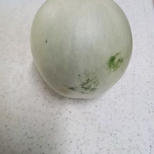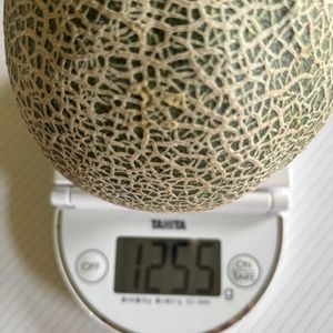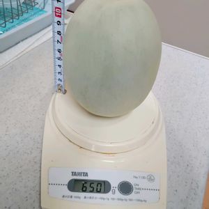 🍈メロン(ころたん) (*′☉.̫☉)‼️落ちてる… いや…まだ早い気がする…(*ꆤ.̫ꆤ*) 8月末が収穫の目安だったんだけどな〜😅 畑の中では中くらいのサイズの子🍈 直径は10センチ。 ❸重さは593グラム。 ご立派ね✨ ❹お尻を押してみる。 カッチカチ😅 ❺何日か追熟してみます。 甘くなるかな〜 どうだろな〜