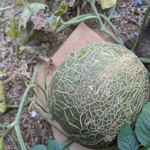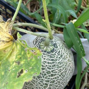 初めてのメロン栽培、2号を収穫しました…又風などで袋の中に落ちてしまいました、収穫迄2週間も早かったので5日間追熟しましたが甘みが少し足りなかったですが、これはこれで美味しく頂きました✨️🍈😋 残りの3号、4号はちゃんと苗で熟します様に、落下しません様に〜🍈🍈🍈🙏