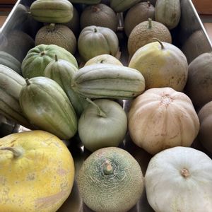 🍈メロン(ころたん) 苗が枯れてしまったため、まとめて収穫した ころたん🍈 追熟して3個ほど食しました… すべて。 ほんのり甘いくらいでしたぁ〜( ᵒ̴̶̷̥́ ·̫ ᵒ̴̶̷̣̥̀ )笑 コジコジめろんちゃんが、僅差で一番甘かった?です😅 果肉は本当に立派なのに…😂 最後の方、水が多かったのか… 肥料なのか… メロン栽培の難しさを痛感しました〜😭 サイズは1キロ超えで果肉はたくさんある。 甘くないのに量はある… なので。これは、サラダメロン🥗です! と言い張り、サラダに入れて出しています🤭笑 ❸もしかしたら… 来年リベンジしたくなるかもしれない…(*ꆤ.̫ꆤ*) なので『種』一応、確保しとこう。そうしよう。笑