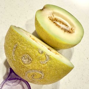 🍈メロン(ころたん) 8/19に絶対にまだ早いのに落ちてしまった畑のメロン🍈 ころたん1号 匂いを嗅いでも、まったくメロンの香りもせず 草の匂いしかしない…笑 そしてカッチカチでした🤣 なので思い切って9日追熟してみました🤭 さすがに皮がシワシワになってきたので本日入刀〜🔪 ❶あれ。すごくちゃんとしたメロンだ😳 匂いをくんくん🐶 ちゃんとメロンの香りがする〜😳‼️ ❷ころたんって皮が薄いのね〜✨ 梨とか林檎レベル。すごい そしてお味は… ん〜少し甘いメロン!😆 スーパーでお安く買えたときのメロンと同じくらいの甘さ♪ 子供たちも母が育てた🍈を 意外と美味いとバクバク食べてました( *´艸`)むふふ これは…いま畑になっている子たち かなり甘いのでは〜🥰と期待大🎶 畑にはあと5〜6個あります🍈 自然落下が楽しみ〜✨