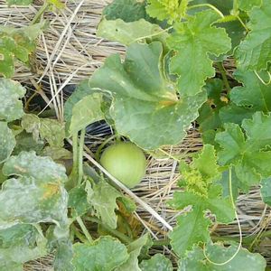 メロン『ころたん』 メロンの赤ちゃんかな? 雨風続きで心配だったけど元気に育ってくれてます(*˘ᗜ˘*)