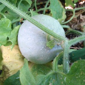 生協の個配で食べるために購入したメロンから種をとって、プランターで栽培しているメロン🍈✨ 直径7〜8cmまで育ちました😆 親づる、子づる、孫づるとか摘心とか誘引とか人工受粉とか、毎日の暮らしに精一杯で、一切何もできませんでした。 自然の力に感謝! 収穫できますように💕