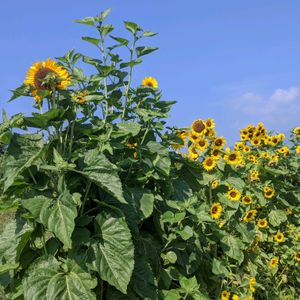 こんばんは。 お久しぶりです。 畑の一本道を抜けて、職場の病院に向かいます。 1枚目は、朝のひまわり。 2枚目は、夕方のひまわり。 頑張って!と、お疲れさま!を、ひまわりたちが声かけてくれます。 ひまわりも夕方は少しお疲れな感じですね。 皆さま、暑さに気をつけてお過ごしください。🌻