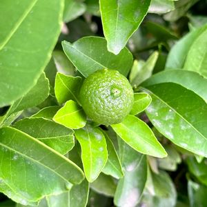 【紀州みかん】の果実。直径2.5センチくらいかな。成長し成る木になったらしく、昨年に引き続き今年も数個実を付けました。寒さに強いので唯一の地植え。