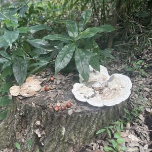 横浜里山ガーデン の奥にある林の中の遊歩道 結構大きなサルノコシカケ 通り抜ける風も涼やかで 森林浴楽しめました
