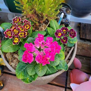 プレミアムバラ咲きジュリアンイチゴのミルフィーユ プリムラベルベットドレス エリカホワイトデライト斑入り葉 クリスマスバージョン これで今年のお花は打ちきりです😥
