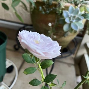 こんばんは♪ ラピスラズリさん㉘ 初開花です♡チビチビです 樹勢が弱いようなのでしばらくは 摘芯をします〜お顔みて✂️ 孫の名前と同じ薔薇 出会えた事に感謝です 嬉しい〜大事にします (⋆ᴗ͈ˬᴗ͈)・*:..。o♬.・*’’*・.・*:.。.☆