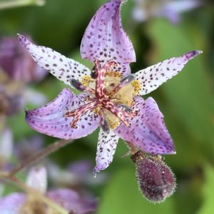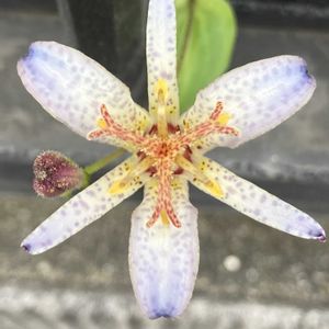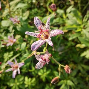 💜タイワンホトトギス ホトトギスより花弁が細めでシャープで全体的に斑点が濃く多いのが特徴です。園芸で良く流通しています。 ⚫︎ユリ科 ホトトギス属 ⚫︎原産 台湾 ⚫︎花期 9月〜10月