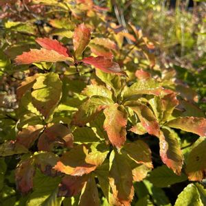 急速に🍁🍂秋化の進む北側バルコニー小庭の朝を切り取りました。 コナラの紅葉。先週ボロボロの夏ダメージ鉢から救出したホトトギス。サネカズラのイボイボの実。サギソウの花後。風向きも北からに変わり陽射しは低く9時を過ぎると影に入るようになってきました。