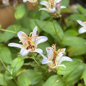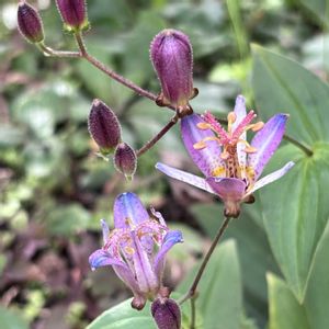 普通のホトトギスとはちょっと違います😊 タイワンホトトギス。 ユリ科ホトトギス属のお花。 こちらも元気いっぱい咲いていました。花びらの先端が薄青色に染まっているのが、いいアクセントになって、かわいいですね。花の根元の丸い膨らみも可愛さポイントアップです🤗